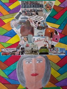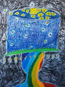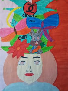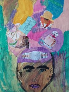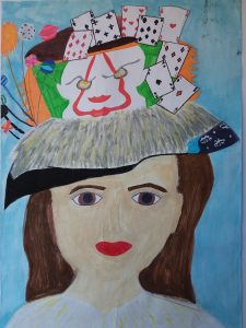 Alle dargestell­ten Bild­mo­tive wur­den nach der Ideen­find­ung Hut­deko­ra­tion mit diversen kreativ­en Gestal­tungsideen umge­set­zt. Der Hut — ein beliebtes The­ma in der Mode­branche — wurde hier­für zielo­ri­en­tiert aus­ge­sucht. Die Auf­gabe bestand darin, fan­tasieför­mige Hut­fig­u­ra­tio­nen mit per­sön­lichen Wün­schen, Träu­men, Mod­e­la­bels zur Fash­ion­welt gestal­ter­isch umzuset­zen. So ent­standen Hut­mod­elle aus diversen bild­ner­ischen Materialien.